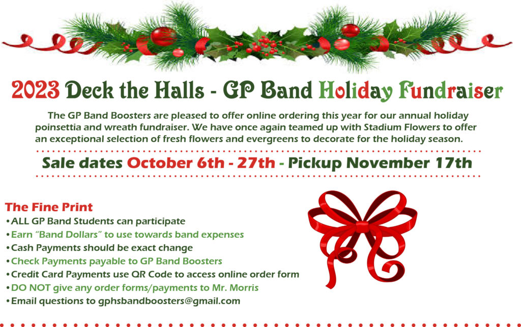 The GP Band Holiday Fundraiser has ended. Orders will be available for pickup on Friday, November 17th after 1pm.